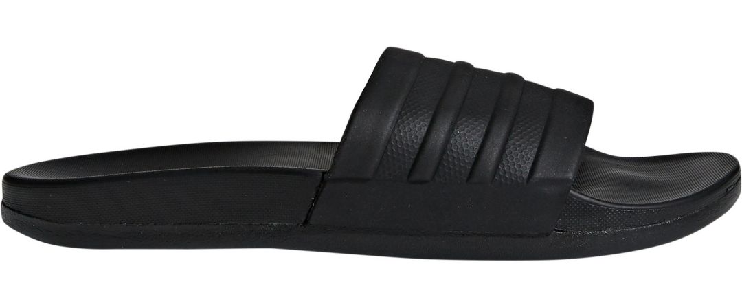 Adilette comfort slides plush slides with standout 3 stripes style.